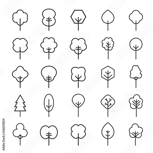 Set of outline Tree icon. Vector Illustration.