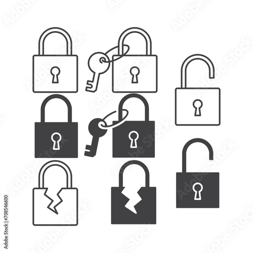 Set of padlock key. Vector outline icon template illustration