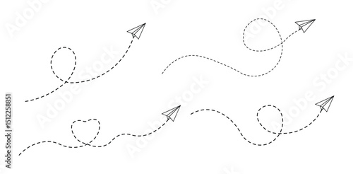 Set of Paper plane with dotted line, Origami paper airplane, Travel symbol, vector illustration
