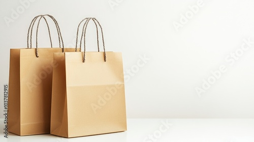 Set of paper shopping bag, file of isolated cut-out object on white background, mockup template for the design, Shopping