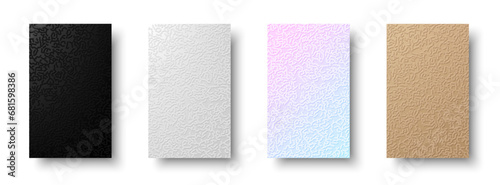 Set of paper tactile embossed textures. Abstract Turing ornament halftone reaction diffusion psychedelic background.
