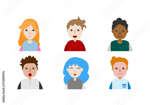 Set of people avatars with different genders and expressions flat design, hand drawn vector design of people with different style, isolated on white design.