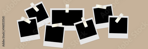 Set of photo frame layouts on brown background. realistic postcard. Layout of photo frames.For photo and printing.Banners. PNG