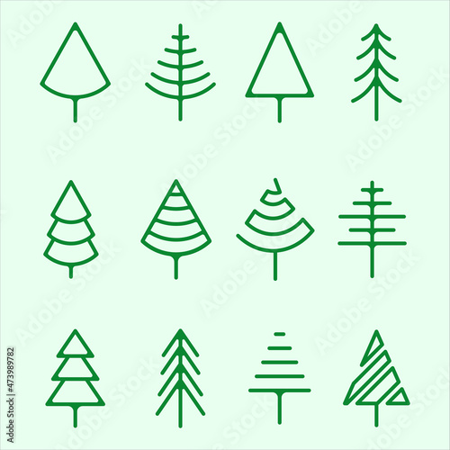 set of pines tree logo line art simple icon isolated vector illustration template graphic design. bundle collection of various minimalist shape pine symbol of nature
