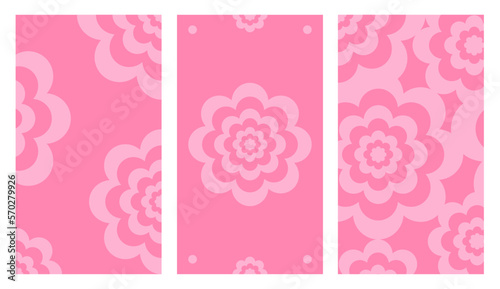 Set of Pink Floral Backgrounds, Social Media Vertical Stories Templates, With Copy Space For Text. Magenta Flower Texture in Simple Modern Style, Background for Banner, Greeting Card, Poster or Advert
