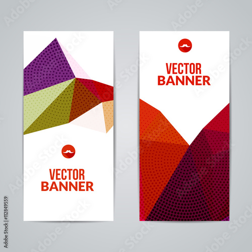 Set of polygonal triangular colorful background banners poster booklet with swirls for modern design, youth graphic concept