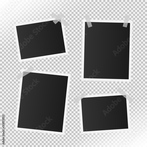 set of realistic vector photo frame on transparent background. vector illustration with adhesive tapes. real size photo.