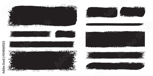 Set of rectrangle shape brush strokes. Brush strokes vector. Paintbrush collection. Grunge design elements. Straight line vector brush strokes. Set of rectangular grunge template backgrounds.