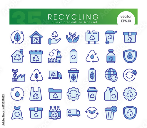 Set of recycling icons. Blue colored outline style icon bundle. Vector Illustration