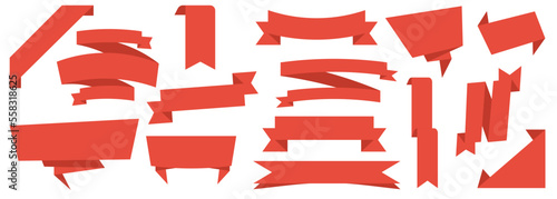 Set of red banner ribbons collection. Tags ribbon template. Vector illustration