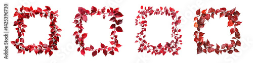 Set of red leaves arranged in a frame shape. isolated on transparent background