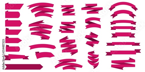 Set of red ribbons, banners, flags. Graphic illustration of a retro tape.