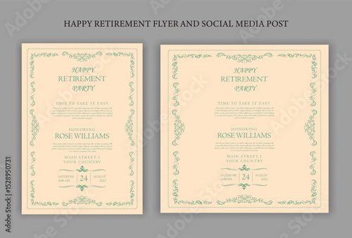 Set of retirement party invitation, square banner, instagram story and a4 poster, vector illustration Retirement Flyer Design Template. Retirement Party Invitation Layout, square banner, and a4 poster