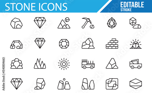 Set of rock and gemstone icons, including mining and excavation-related icons.