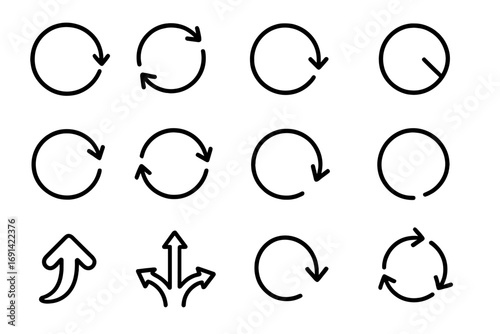 Set of round arrow icons, circular refresh, reload, repeat, sync signs. Outline vector symbols for graphic design, web apps, adverts, UI elements, modern style