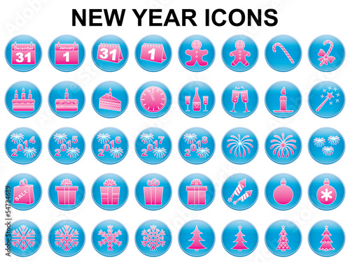 set of round New Year holiday icons