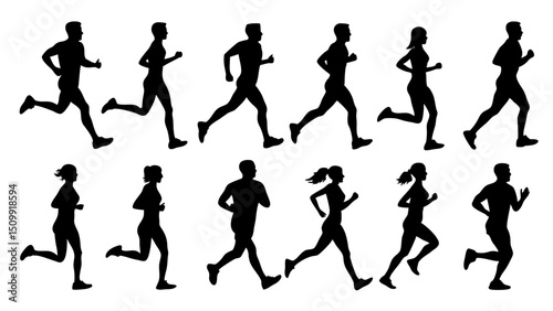 set of running people silhouette vector on tranparent background.
