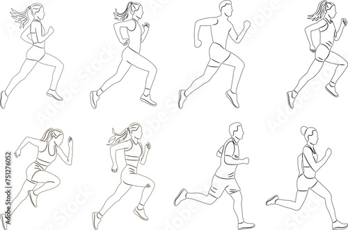 set of running people sketch, on white background vector