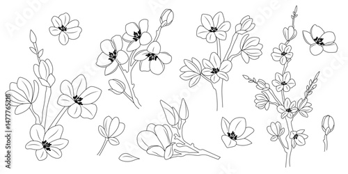 Set of sakura flower branches