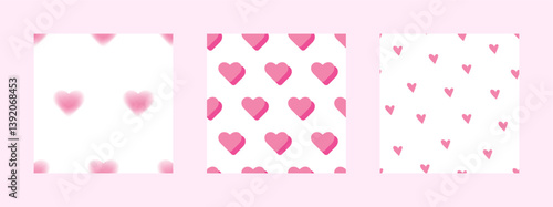 Set of seamless patterns with pink hearts. Collection of backgrounds with hearts in 80-90s style. Blurry, tiny and volumetric hearts. Girly style, coquette. Good for cover design, surfaces, textile