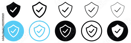 Set of security shield protection icon collection. Shield with check mark symbol. Vector Illustration.