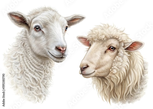 Set of sheep portraits on transparent background. Domestic and wild animal concept.