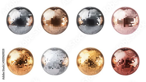 Set of shining disco ball reflections isolated on transparent background
