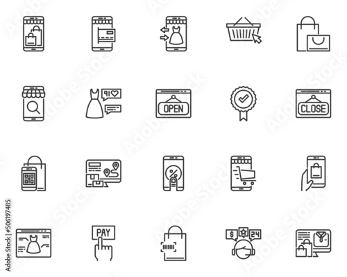 set of shopping line icons, online shopping, pay, marketing, marketplace