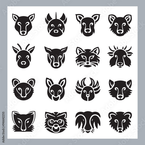 Set of silhouette logotype icons animal Lion, Elephant, Tiger, Giraffe, Kangaroo, Panda, Gorilla, dolphin, cat, deer, Polar Bear, Zebra, fox in white background