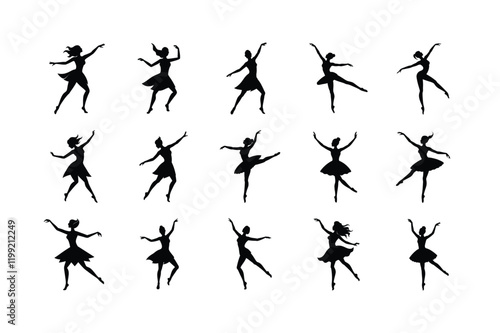 set of silhouette of dancing girl