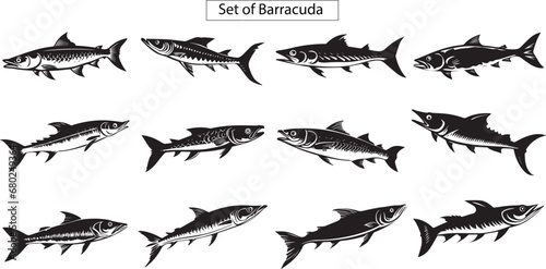 Set of silhouettes of Barracuda fish