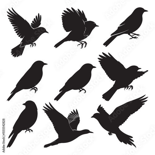 set of silhouettes of birds