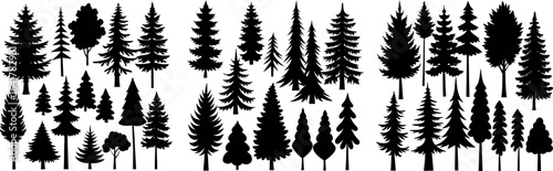 set of silhouettes of trees. pine trees isolated images. spruce tree illustration for winter christmas