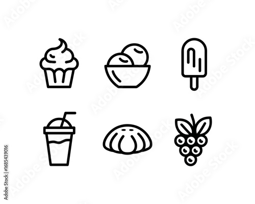 Set of six sweet dessert and fruit line art icons vector graphics scalable illustration vector
