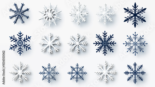 Set of snowflakes , small snowflakes, white background. Christmas and New Year theme in watercolor
