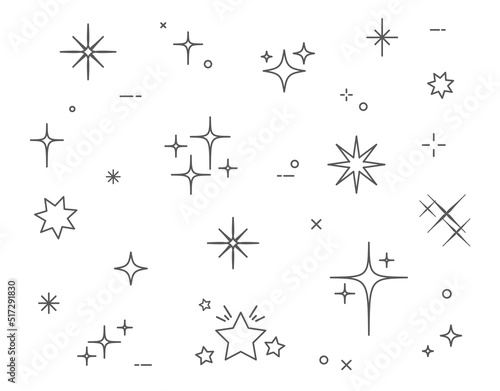 Set of sparkles stars on white background. Twinkling shiny flash elements. Vector illustration