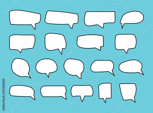 Set of speak bubble text, chatting box, message box outline cartoon vector illustration design. Balloon doodle style of thinking sign symbol.