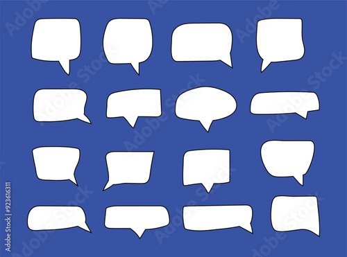 Set of speak bubble text, chatting box, message box outline cartoon vector illustration design. Balloon doodle style of thinking sign symbol.