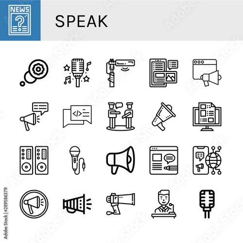 Set of speak icons such as Question, Thought, Microphone, Blog, Loudspeaker, Megaphone, Chat, Talk, Politician , speak