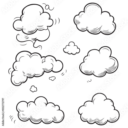 Set of speech bubbles, Clouds sketches. Vector illustration isolated on white background, Comic Speech Bubbles