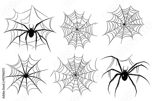 Set of spider web, Halloween cobweb, frames and borders, scary elements for decoration.