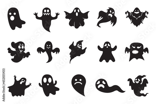 Set of spooky ghost silhouette in different shapes isolated on white background