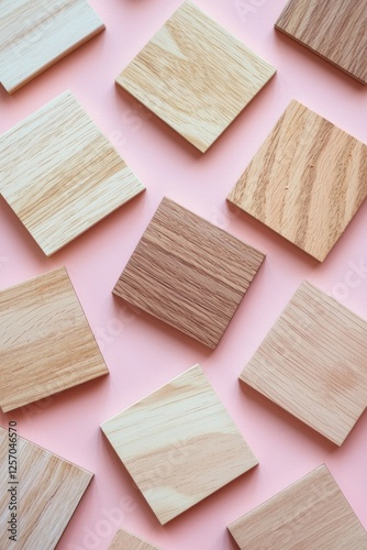 Set of square wooden samples on a pink background, flat design