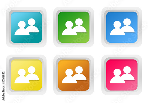 Set of squared colorful buttons with people symbol
