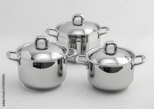 Set of steel cooking pots on a white background