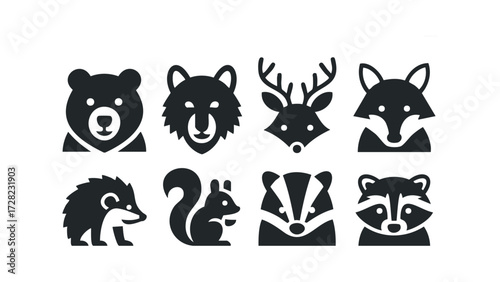 Set of stylized animal faces and figures. Vector hand drawn illustration