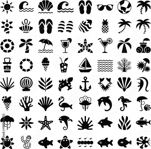 set of summer beach icon vector