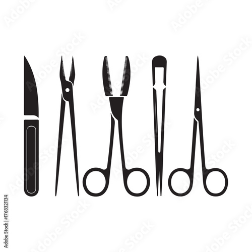 Set of Surgical Tools and Instruments Silhouette Vector Icons