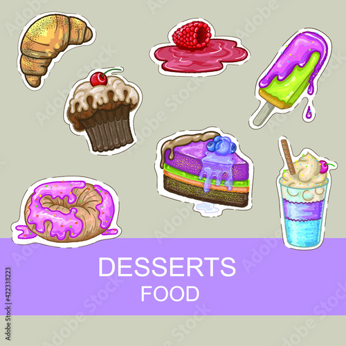 set of sweets, ice cream, donut, pie, cake, isolated vector