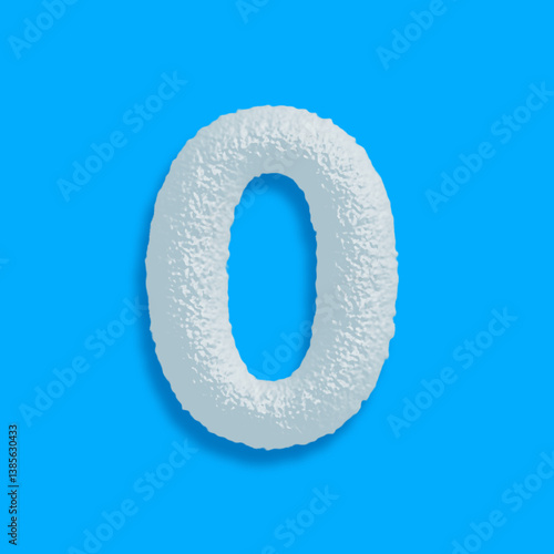 set of symbol and numbers made of sugar, blue background, 3d illustration, number 0